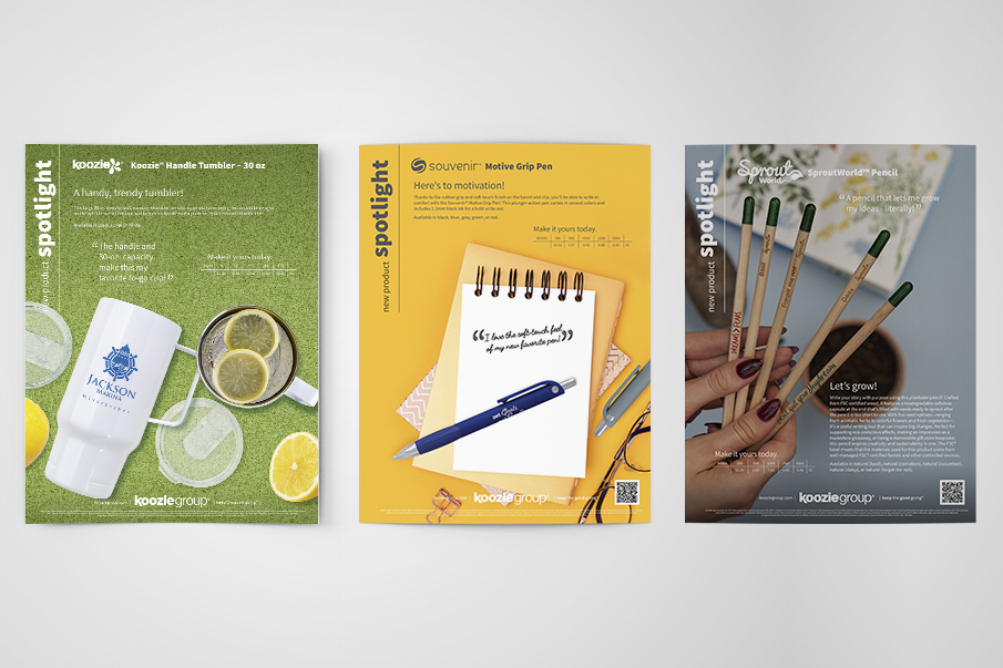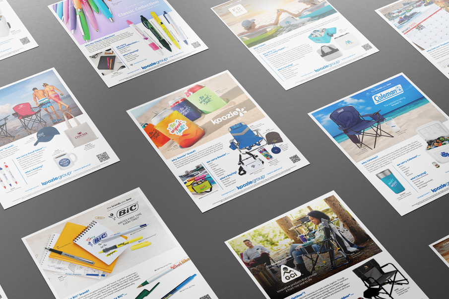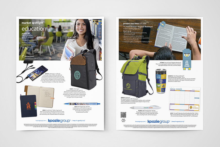 Developed layout guide for this series of flyers showcasing products perfect for popular target markets within promotional products. Guide was established as the standard to follow for flyer layout and social media graphics, to maintain consistency throughout the series of flyers, from all designers on the team.