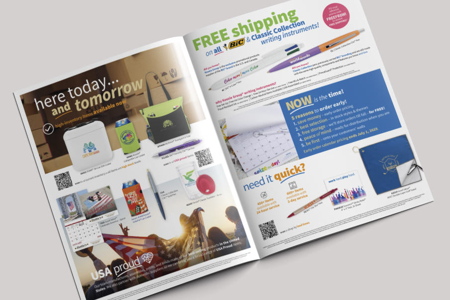 17″w x 11″h flat / 8-1/2″w x 11″h folded bi-fold brochures – spring/summer and fall/winter 2025 editions4-color process